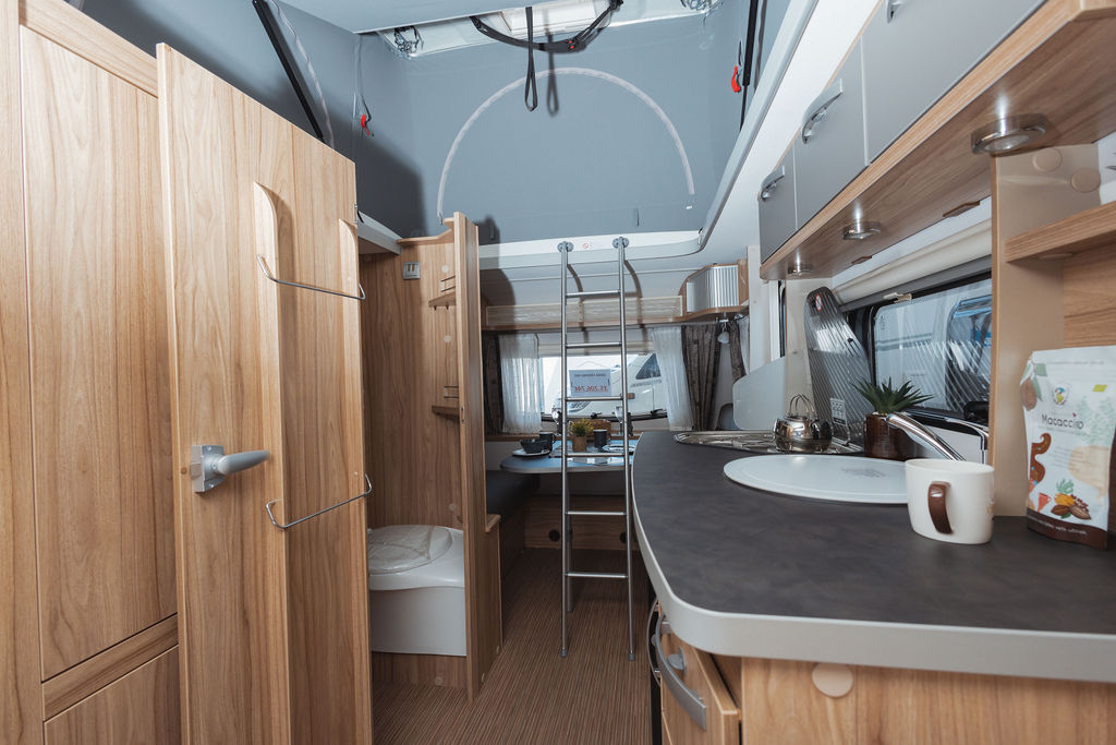 (biv. vrata z oknom, nosilec za kolesa na priklopu, big foot oporne noge, rezervoar za odpadno vodo na kolesih 22l)